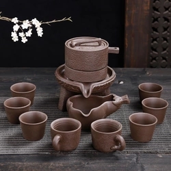 紫砂茶具是用江苏宜兴南部及其毗邻的浙江长兴北部埋藏的一种特殊陶土,即紫金泥烧制而成的。这种陶土,含铁量大,有良好的可塑性,烧制温度以摄氏1150度左右为宜。紫砂茶具的色泽,可利用紫泥泽和质地的差别,经过"澄"、"洗",使之出现不同的色彩,如可使天青泥呈暗肝色,蜜泥呈淡赭石色,石黄泥呈朱砂色,梨皮泥呈冻梨色等;另外,还可通过不同质地紫泥的调配,使之呈现古铜、淡墨等色。优质的原料,天然的色泽,为烧制优良紫砂茶具奠定了物质基础。